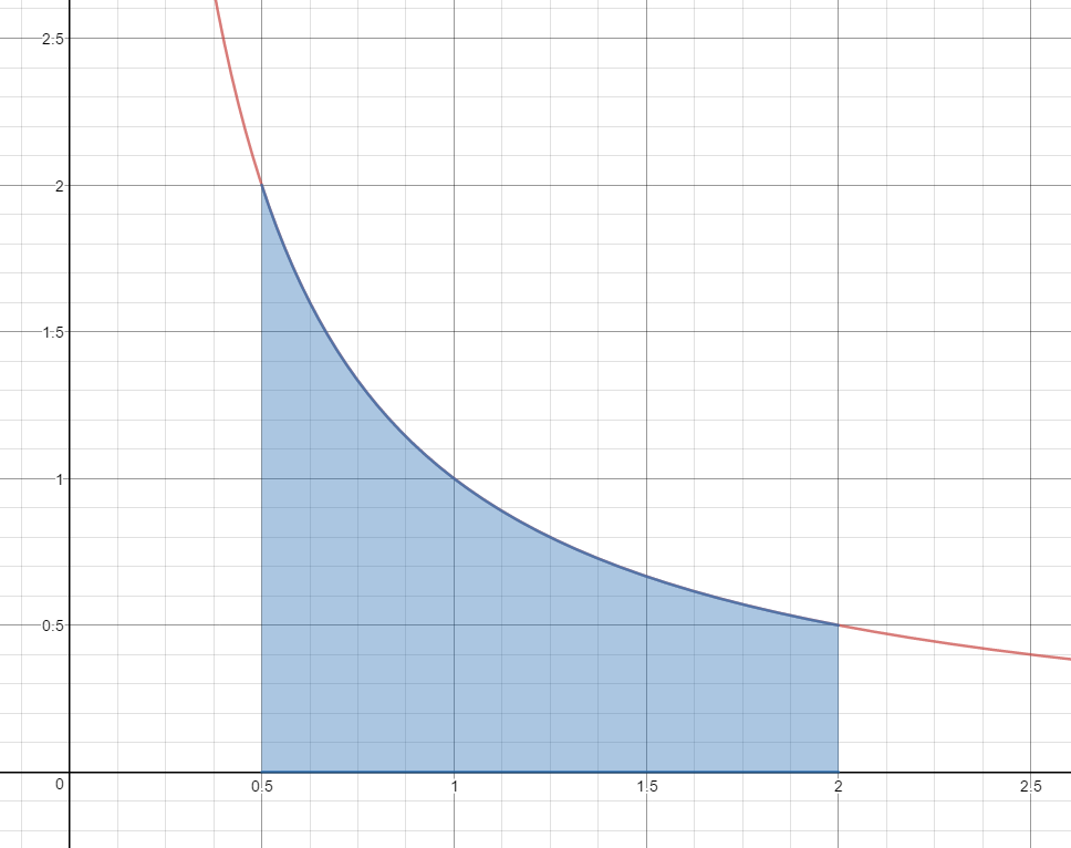 $A\approx \frac{1}{2}\left( {\frac{1}{{.5}}} \right) + \frac{1}{2}\left( {\frac{1}{1}} \right) + \frac{1}{2}\left( {\frac{1}{{1.5}}} \right)$